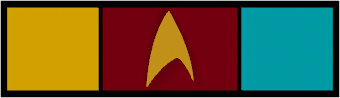 | Picard 4000 Description: 1-3/8″ x 3/8″ Rectangle, Construction Yellow, Burgandy, and Teal Device: Gold Sun Disk and Silver Delta Cost: $5.00 ea.