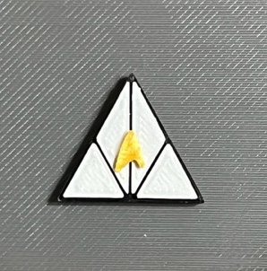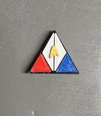 | STF31 Star Description: 1″ x 1″ Triangle, Smurf Blue, Black and Gold Device: None Cost: $5.00 ea.