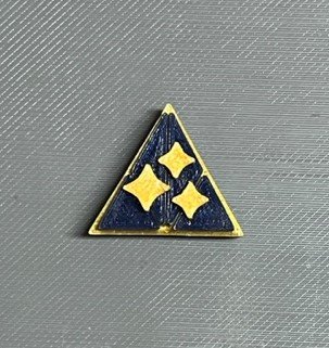 | Decker Order of Merit Description: 1″ x 1″ Triangle, Red, Blue, White with a Gold Border Device: Gold Delta Shield Cost: $5.00 ea.